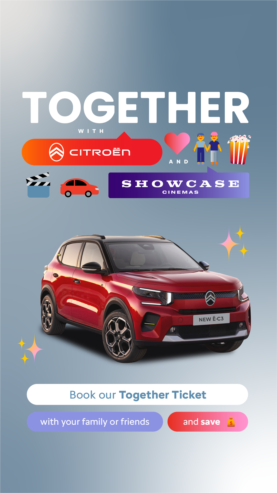 Partnering with Showcase to create the Together Ticket will firmly tie Citroën to the formative experience of a family cinema trip. Effectively building an association with families who are careful to spend their money wisely.